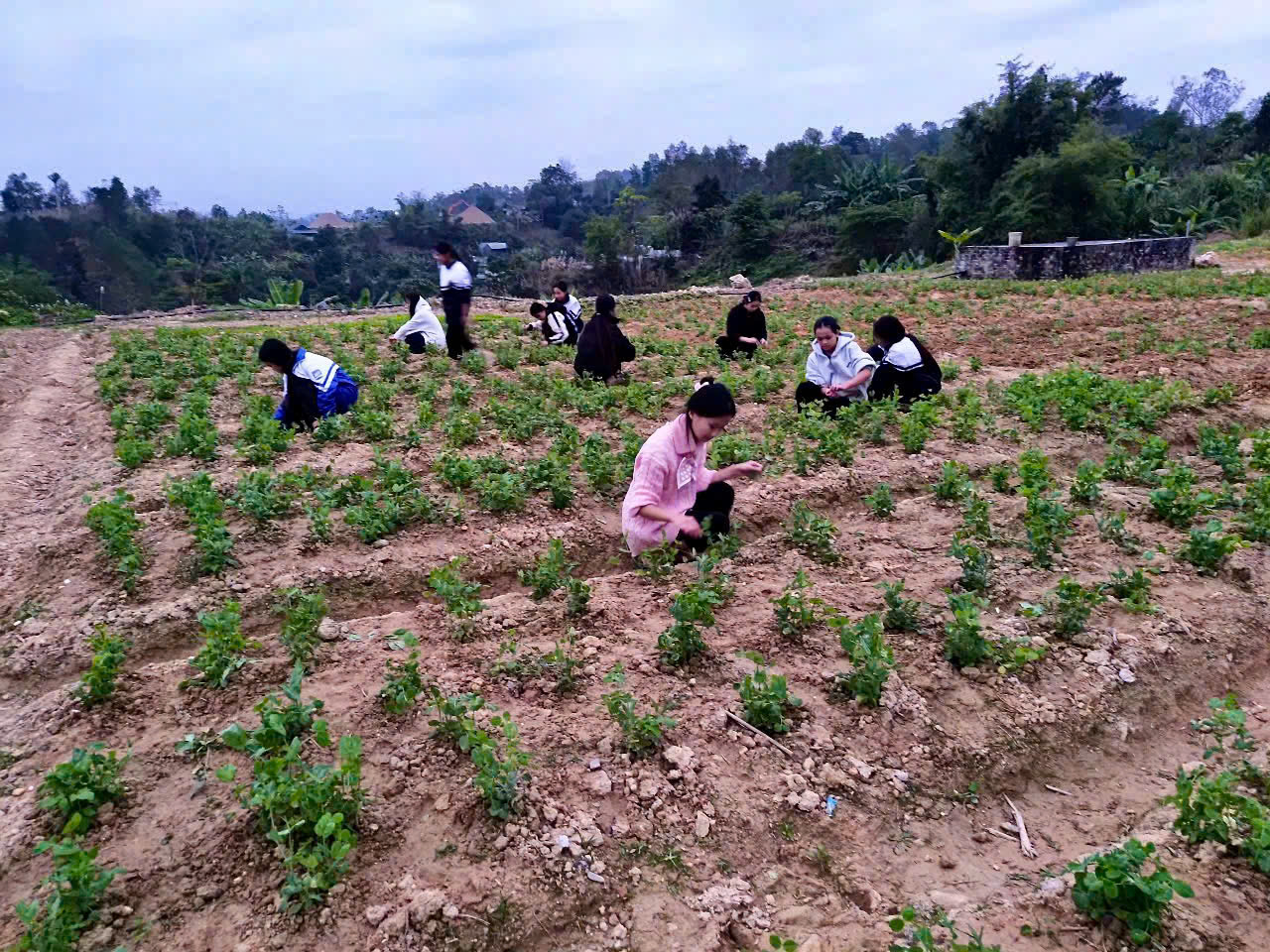 Dưới đây là một số hình ảnh các em học sinh chăm sóc vườn rau tự trồng