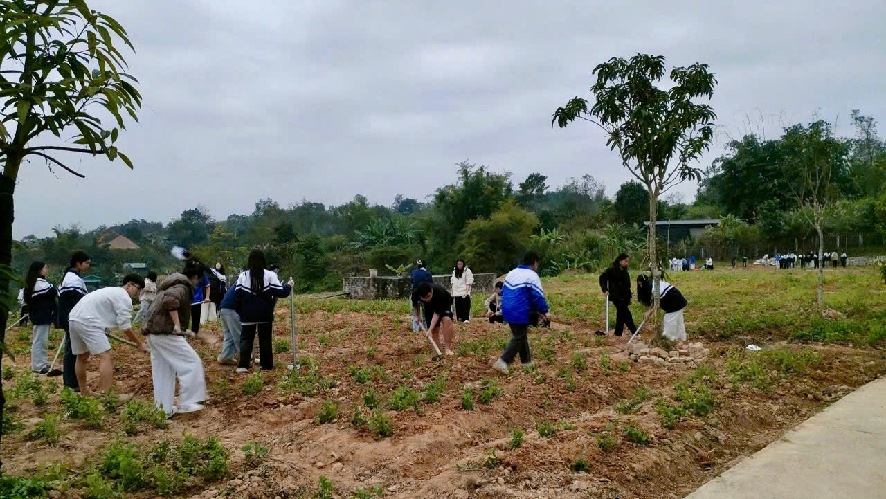 Nhà trường đã tổ chức cho học sinh tham gia cải tạo đất trong khuôn viên trường, trồng và chăm sóc rau hằng ngày. Với tinh thần trách nhiệm và ý thức lao động nghiêm túc, các vườn rau của học sinh sinh trưởng tốt và đến kỳ thu hoạch. Trung bình mỗi tuần hai lần, học sinh trực tiếp thu hái rau, đưa vào nhà bếp của trường để các cô cấp dưỡng chế biến, bổ sung vào bữa ăn hằng ngày góp phần cải thiện chất lượng bữa ăn, bảo đảm an toàn thực phẩm.