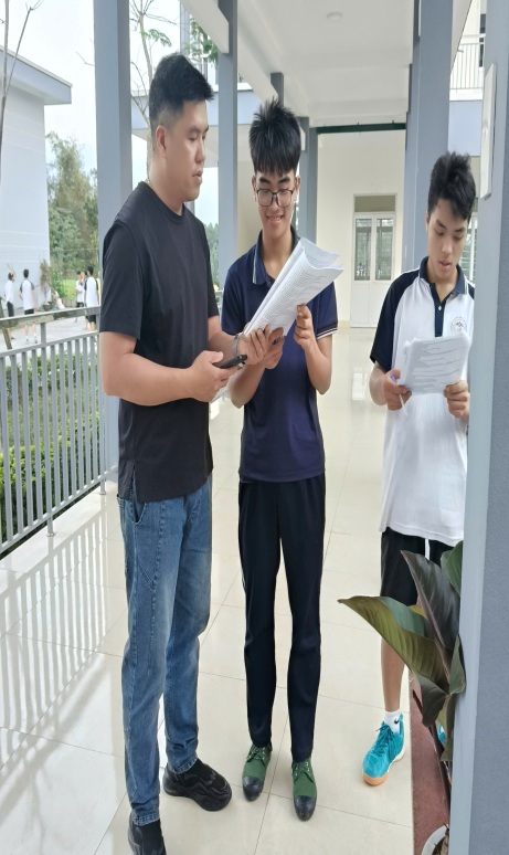 Thầy giáo Nông Trung Hiếu đang hướng dẫn các học sinh ôn tập