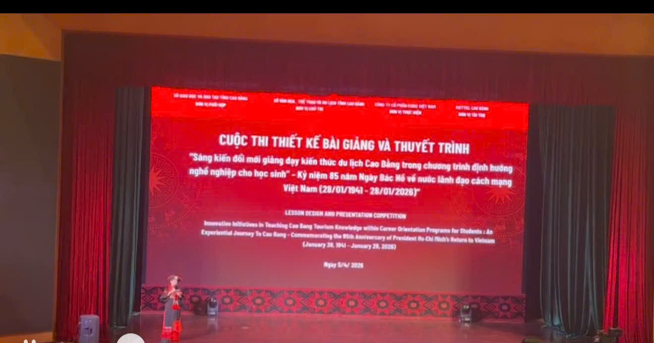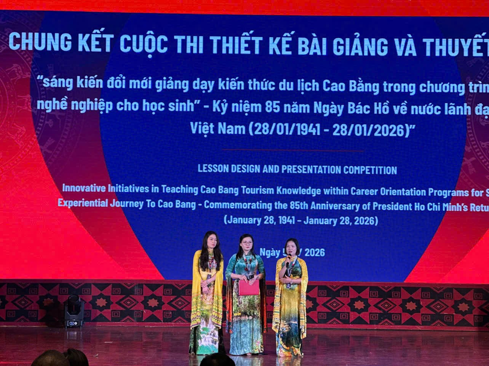 Hướng tới kỷ niệm 85 năm ngày Hồ Chí Minh trở về nước lãnh đạo cách mạng (28/01/1941 - 28/01/2026), Sở Giáo dục và Đào tạo tỉnh Cao Bằng phối hợp với Sở Văn hóa, Thể thao và Du lịch Cao Bằng tổ chức Chung kết Cuộc thi Thiết kế bài giảng và thuyết trình với chủ đề “Sáng kiến đổi mới giảng dạy kiến thức du lịch Cao Bằng trong chương trình hướng nghiệp cho học sinh”. Cuộc thi là hoạt động thiết thực nhằm góp phần đổi mới phương pháp dạy học, đồng thời quảng bá tiềm năng du lịch của Cao Bằng thông qua các hoạt động giáo dục sáng tạo trong nhà trường.