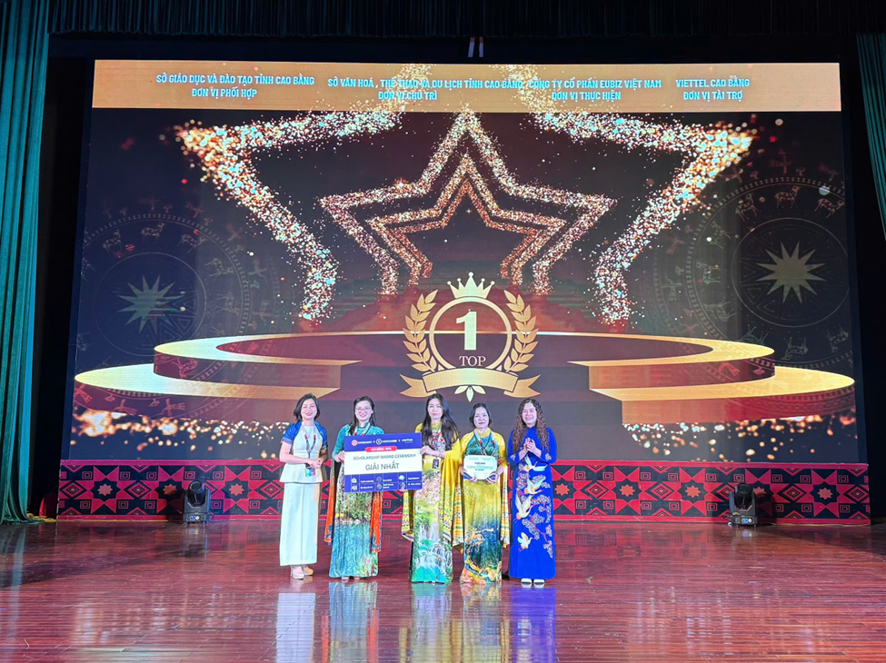 Vòng chung kết diễn ra trong không khí sôi nổi và trang trọng với sự tham gia của các đội thi xuất sắc nhất. Các đội đã trình bày những bài giảng sáng tạo, kết hợp linh hoạt giữa kiến thức, hình ảnh trực quan và kỹ năng thuyết trình. Qua quá trình đánh giá công tâm và khách quan, Ban Tổ chức đã lựa chọn những phần thi tiêu biểu để trao giải. Đặc biệt, đội thi của nhà trường đã xuất sắc vinh dự đạt Giải Nhất của cuộc thi, ghi dấu ấn nổi bật về ý tưởng đổi mới trong giảng dạy và khả năng truyền cảm hứng về du lịch Cao Bằng tới học sinh với sáng kiến 'Hành trình về nguồn cội; Vẽ tranh lịch sử và Thổ cẩm Luống Nọi".