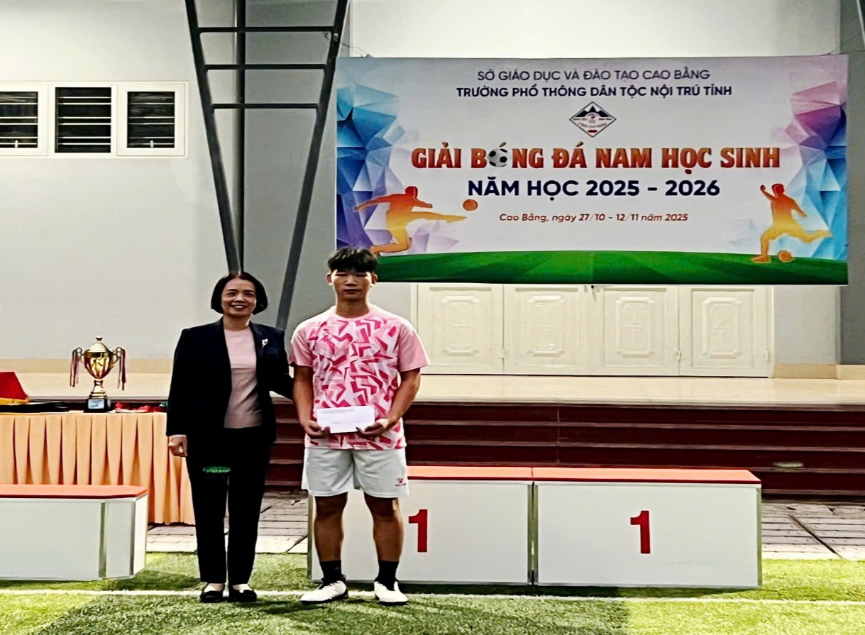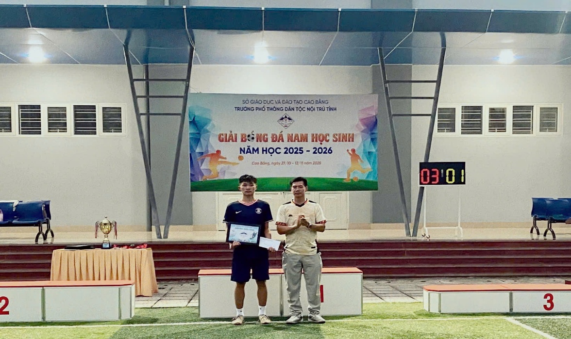 Chào mừng kỷ niệm 43 năm Ngày Nhà giáo Việt Nam (20/11/1982 – 20/11/2025), Trường Phổ thông Dân tộc nội trú tỉnh Cao Bằng đã tổ chức nhiều hoạt động thi đua sôi nổi. Trong đó, giải bóng đá nam năm 2025 tiếp tục là hoạt động thường niên đầy ý nghĩa, góp phần thực hiện lời dạy của Bác Hồ: “Khỏe để học tập, rèn luyện, xây dựng và bảo vệ Tổ quốc”. Sân chơi này giúp học sinh rèn luyện thể lực, nuôi dưỡng tinh thần đoàn kết, ý thức kỷ luật và lối chơi trung thực, cao thượng; hướng tới mục tiêu phát triển toàn diện Đức – Trí – Thể – Mĩ.