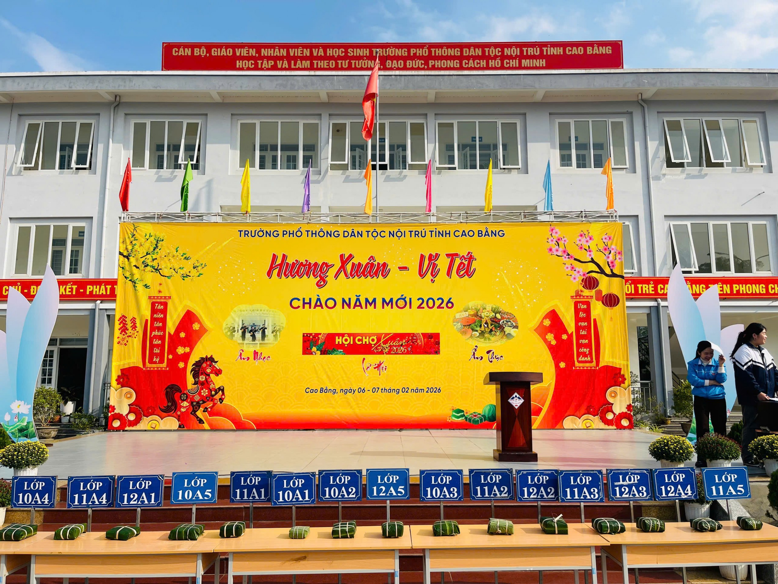 Trong 02 ngày 06, 07/02/2026, Trường PT DTNT tỉnh Cao Bằng đã tổ chức chuỗi hoạt động giáo dục văn hóa truyền thống với chủ đề “Hương Xuân - Vị Tết”. Chương trình diễn ra sôi nổi, đa dạng, mang đậm bản sắc dân tộc và để lại nhiều dấu ấn đẹp trong lòng thầy trò nhà trường. Phát biểu khai mạc chuỗi hoạt động Nhà giáo ưu tú Lê Thị Lan Phương - Bí thư Chi bộ, Hiệu trưởng nhà trường nhấn mạnh: “Tết cổ truyền là dịp để mỗi người Việt Nam hướng về cội nguồn, trân trọng những giá trị văn hóa lâu đời của dân tộc. Với chủ đề Hương Xuân - Vị Tết, nhà trường mong muốn các em học sinh không chỉ được trải nghiệm những hoạt động gắn với phong tục truyền thống, mà còn học được tinh thần đoàn kết, sáng tạo và trách nhiệm. Đây chính là hành trang quý báu để các em bước vào đời, vừa giữ gìn bản sắc văn hóa, vừa tự tin hội nhập.” Lời phát biểu của cô đã khơi dậy niềm tự hào dân tộc, đồng thời tạo động lực để học sinh tham gia sôi nổi, nhiệt tình trong chuỗi các hoạt động.