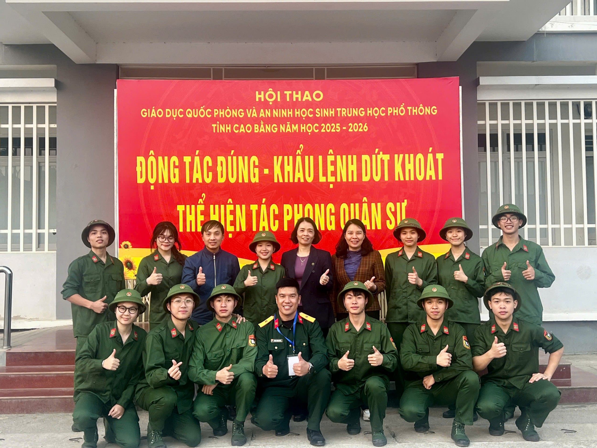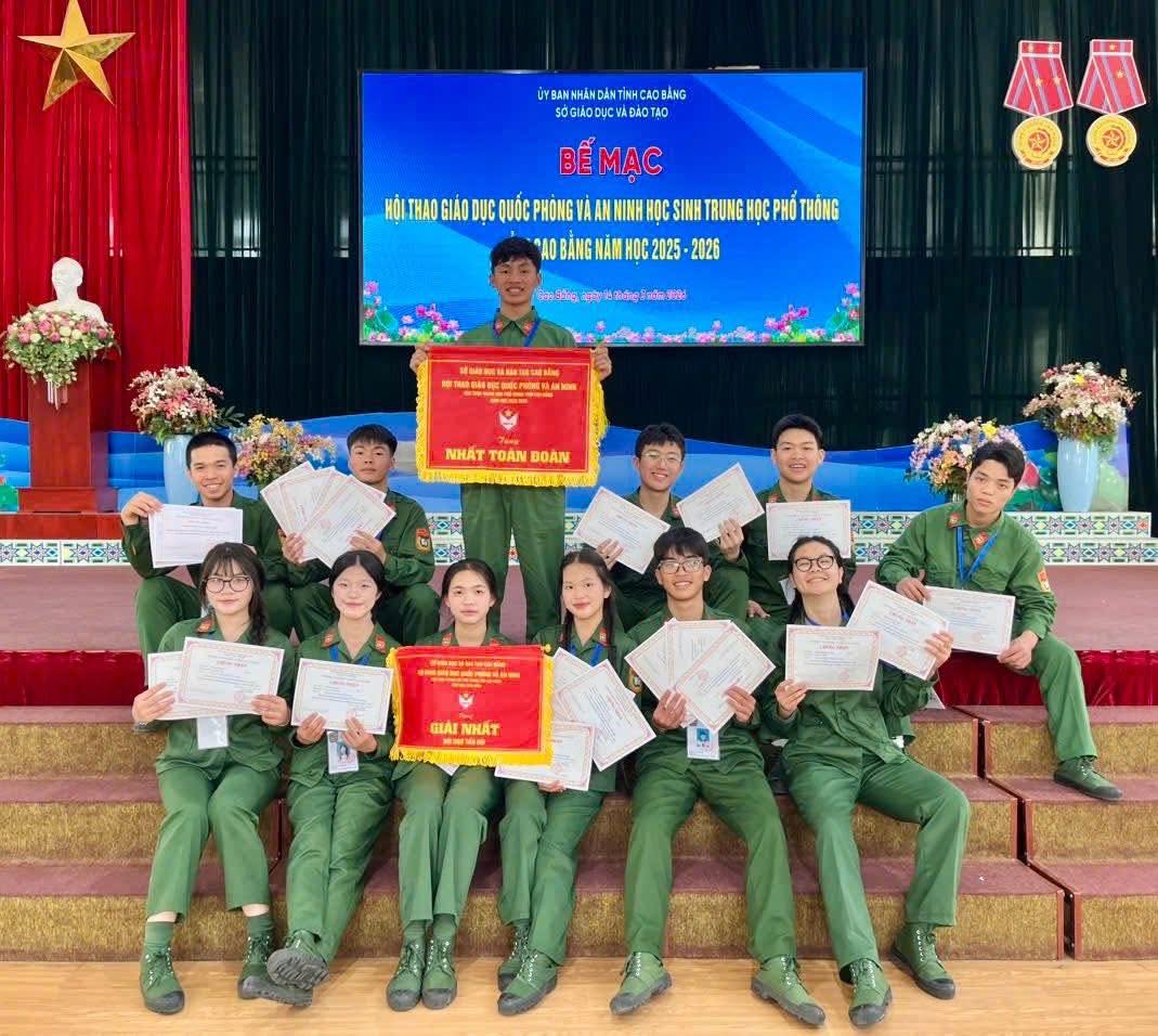 Tham gia Hội thao cấp tỉnh năm học 2025 - 2026, Trường Phổ thông Dân tộc nội trú tỉnh Cao Bằng đã thành lập Đội tuyển GD QP&AN gồm 9 thành viên chính thức, 03 thành viên dự bị là các học sinh tiêu biểu, xuất sắc được lựa chọn từ Hội thao cấp trường đến từ các khối lớp 10, 11 và 12. Đồng hành cùng đội tuyển là thầy giáo Nông Trung Hiếu - Tổ trưởng Tổ Quản lý học sinh nội trú, giáo viên giảng dạy bộ môn Giáo dục Quốc phòng và An ninh, đồng thời là huấn luyện viên trực tiếp các nội dung.