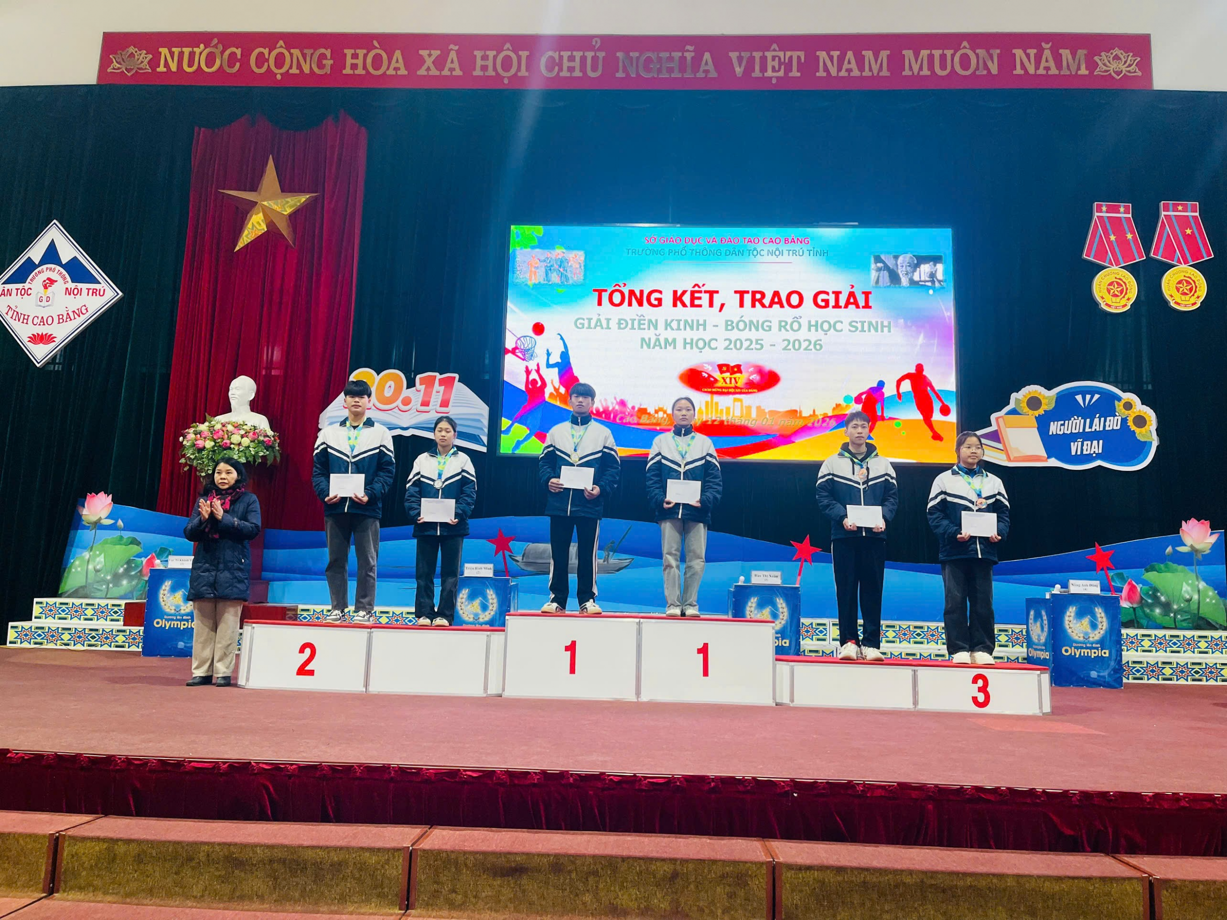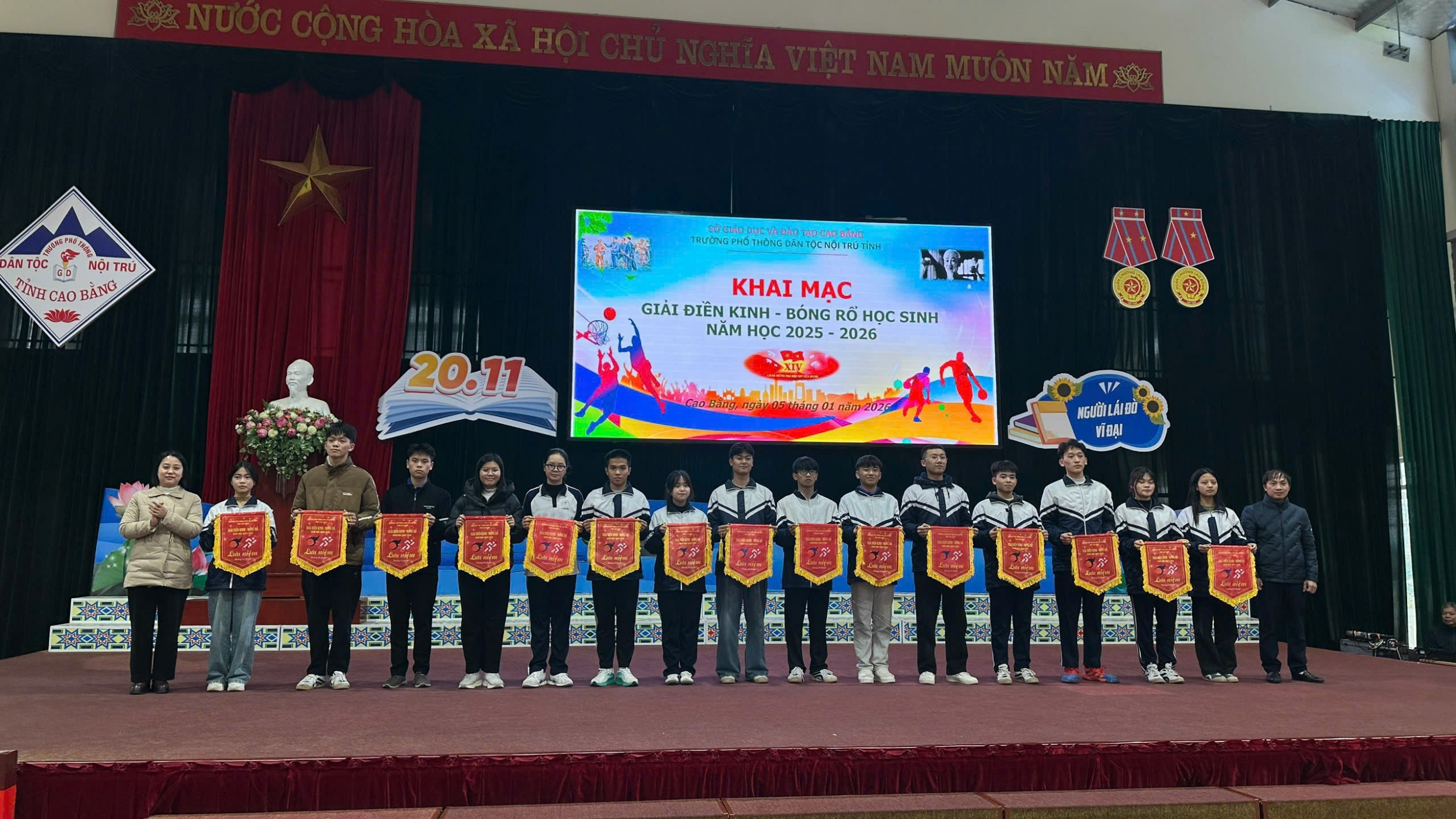 Chiều ngày 05/01/2026, Trường Phổ thông Dân tộc nội trú tỉnh Cao Bằng tổ chức Khai mạc Giải Điền kinh - bóng rổ học sinh năm học năm học 2025 - 2026. Giải đấu được tổ chức nhằm tạo sân chơi thể thao lành mạnh, góp phần rèn luyện sức khỏe và nâng cao tinh thần đoàn kết cho học sinh.